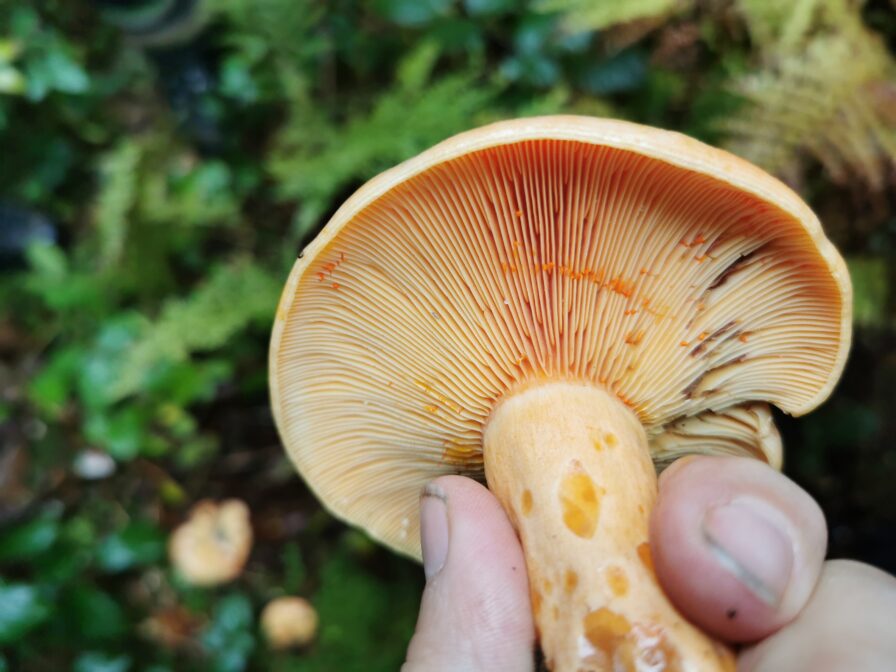 Merksatz: Orange Milch + milder Geschmack + Nadelbaum = echter Reizker.